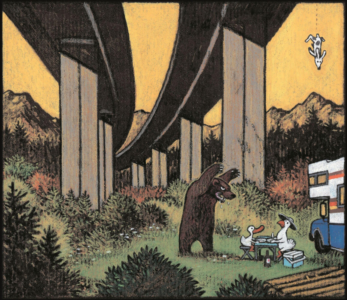 As an illustrator and comics artist, Tirabosco has an affinity with painting, but does not actually paint in the narrower sense of the word. His special monotype-like technique on grainy paper characterises his distinct, very vivid style with soft contours, subtle shades of grey and chalky colour fields. Tirabosco is internationally renowned as an illustrator and simultaneously as an imaginative storyteller, who is just as comfortable with autobiographical or surreal material as he is with socio-critical or humorous subject matter. Thanks to this thematic diversity, Tirabosco is known not only for his comic albums published by major French comics publishers, but also for illustrations and cartoons in magazines like “Strapazin”, “Drozophile”, “Libération” and “L’Hébdo”. In addition, he is an insightful children’s book author with a definite understanding of young readers. His latest release is the narrative comic “Femme sauvage”, a gripping and almost wordless warning on the consequences of how we treat nature.