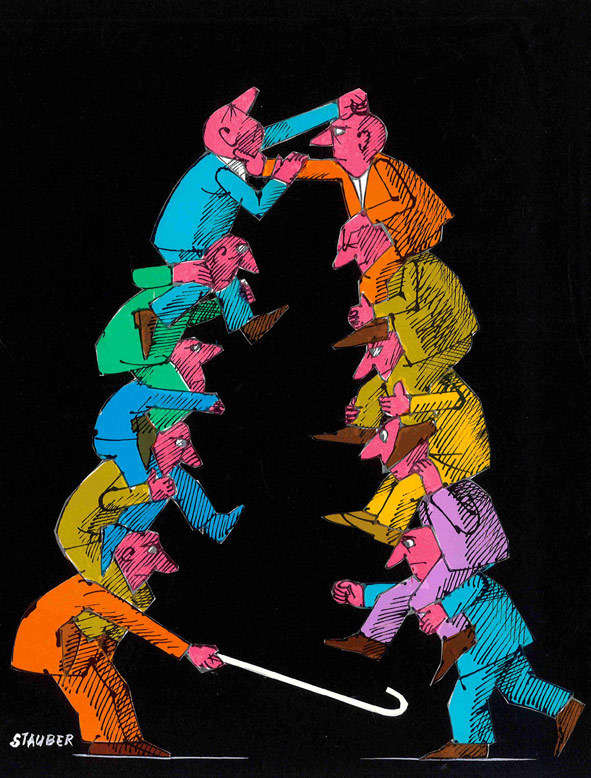 The Cartoonmuseum Basel is presenting a major retrospective exhibition on the work of Swiss cartoonist Jules Stauber (1920-2008). The artist, who was born near Montreux, touches on themes as diverse as philosophy, society, work and relationships – topics he examines with an almost scientific meticulousness to draw out their essence. His body of work consists of close to 17,000 illustrations that all attest to the artist’s acute power of observation, sensual imagination, elegant technique and quiet sense of humour. The poetic imagery and the precise and contained strokes are reminiscent of the great European illustrators who were Stauber’s contemporaries: Bosc, Chaval, Flora and Sempé. Original works by these artists will also be displayed in the exhibition. The Cartoonmuseum Basel highlights Jules Stauber’s influential role as an illustrator for the “Nebelspalter” and shows works by other cartoonists who like Stauber published in this renowned satirical magazine. In an appealing and accessible way, the exhibition brings to life the contents, forms and limits of satirical social criticism in the second half of the 20th century.