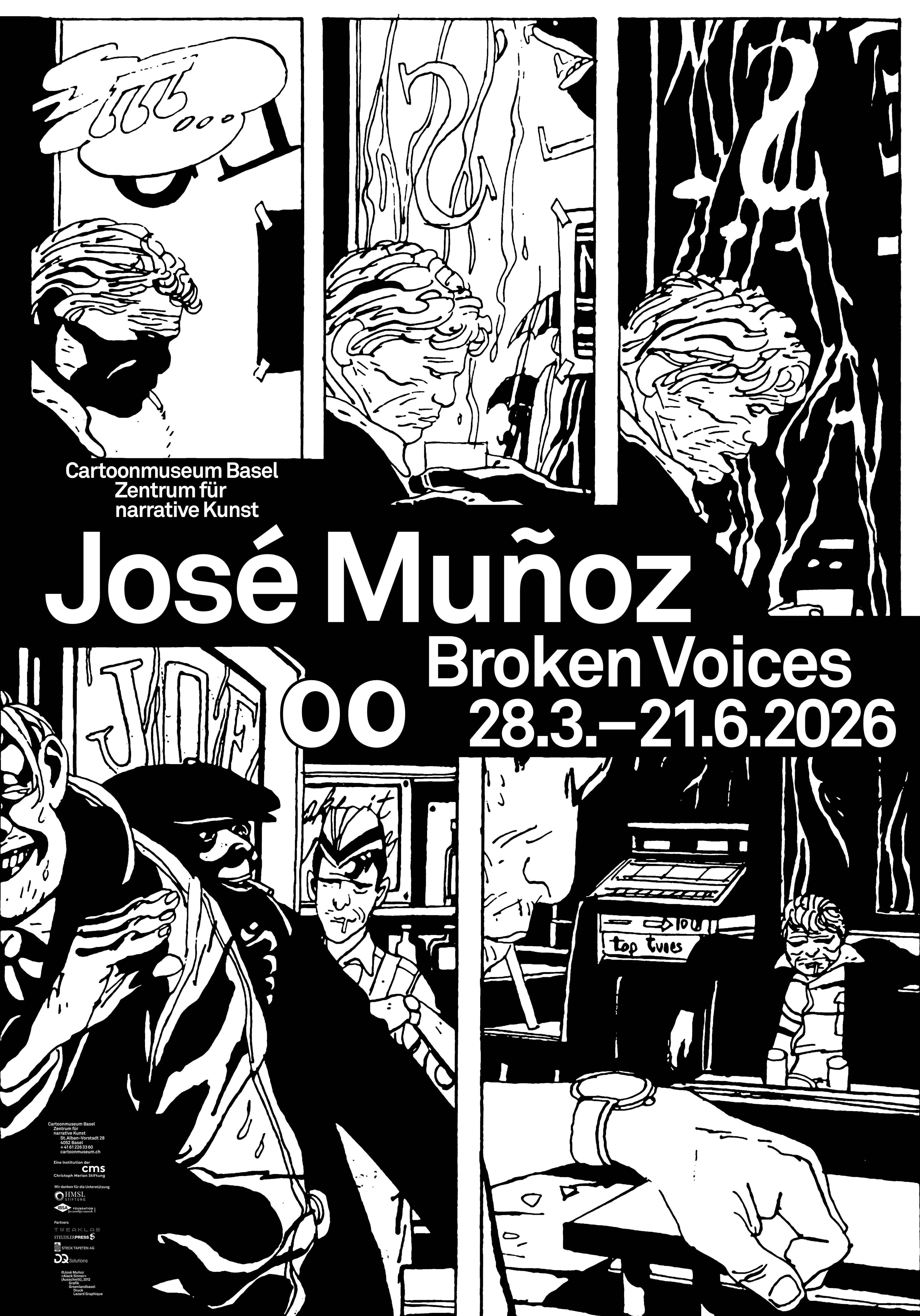 Das Cartoonmuseum Basel zeigt das Lebenswerk des argentinischen Comiczeichners José Muñoz (*1942), der bekannt für seine expressiven Schwarz-Weiss-Krimis ist, mit denen er den Alltag von Aussenseitern am Rande der Gesellschaft zeigt. In der grossen Retrospektive lernt man aber auch den malerischen Muñoz und seine Liebe zu Musik und Tanz kennen, da der Künstler zum ersten Mal für das Publikum sein Archiv öffnet. Erfahren Sie mehr über diesen gesellschaftskritischen und virtuosen Meister bei einer Führung durch die Ausstellung.