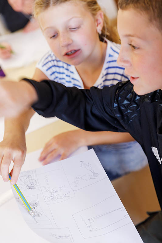 Jüngere Schülerinnen und Schüler widmen sich im interaktiven Rundgang eher der Bildsprache, den Möglichkeiten der Zeichnung und den unterschiedlichen Gestaltungstechniken im Comic. Fortgeschrittene Schülerinnen und Schüler setzen sich mit den gesellschaftlichen Fragen und Genderfragen auseinander. Allen gemeinsam ist, dass sie schnell vergessen, dass sie Französisch sprechen...